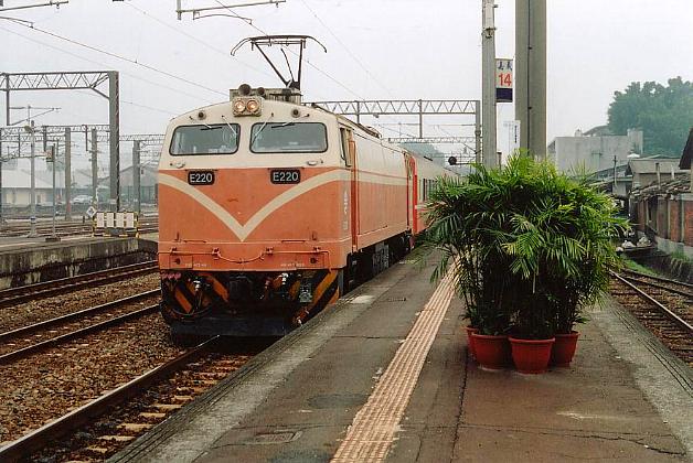 Taiwan Railway Administration E 200 class arrives at Chiayi