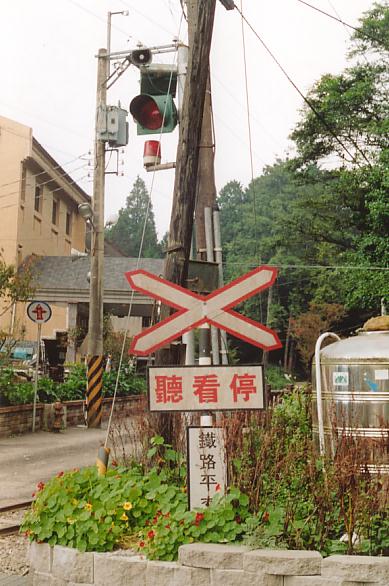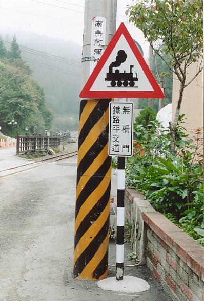 looking) railway crossing warning signs at Alishan. |