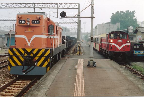 3'6" gauge R46 reverses out of Chia-Yi station with a works