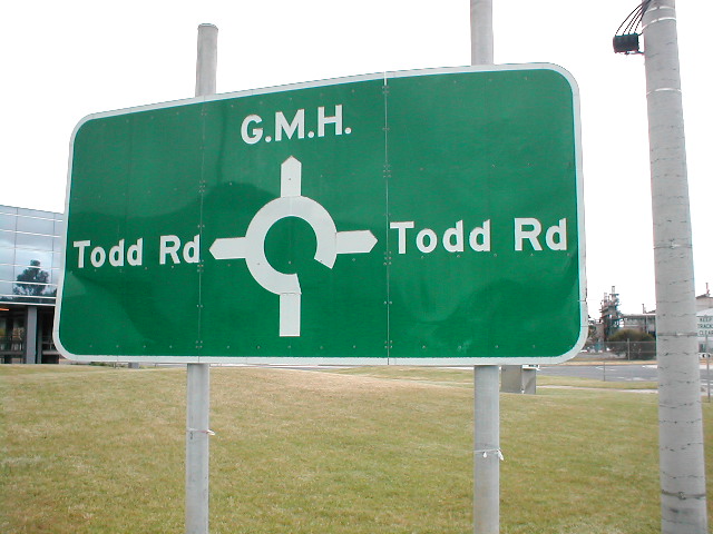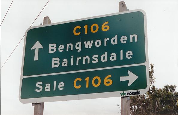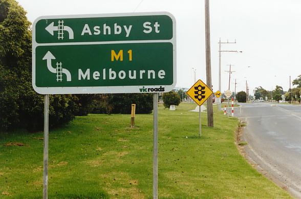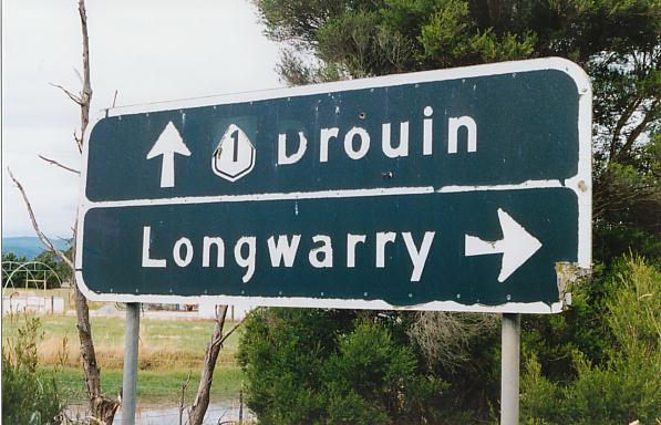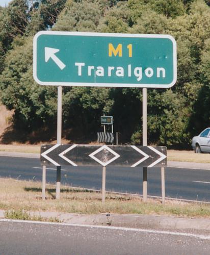 the very weathered chevron sign below. Since replaced. Drouin, Vic. |