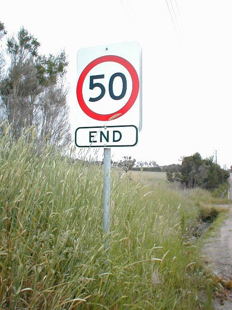 50 END. An unusual way of signing the end of a 50 zone.