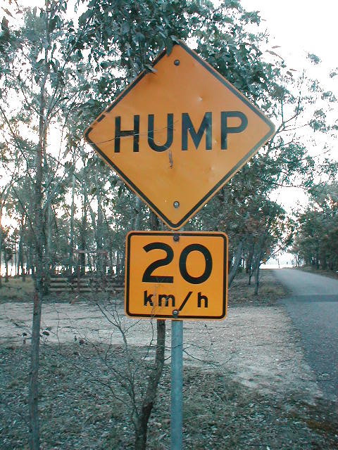SPEED HUMPS AHEAD. Alternatively worded version, Heyfield, Vic. |