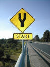 tuning fork' symbol for a divided road. The START plate is no longer a