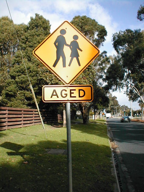 CAUTION ELDERLY PERSONS CROSS HERE. I took this photo