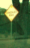 was dusk. CONCEALED ROAD. Another style of sign.
