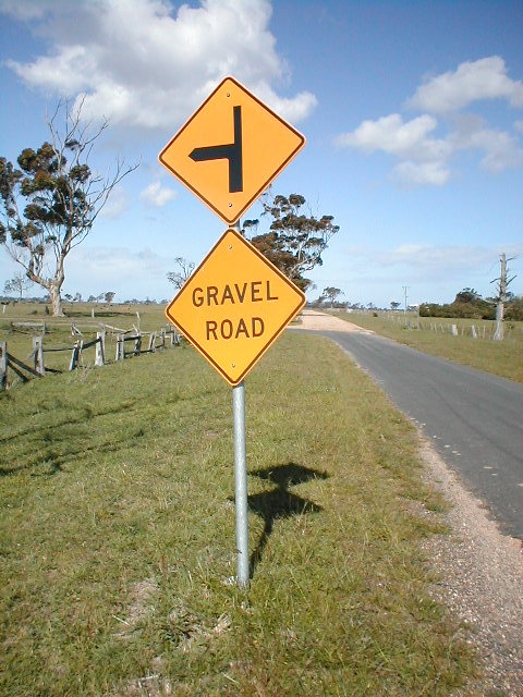was removed, it was replaced with a Gravel Road sign under the nearby