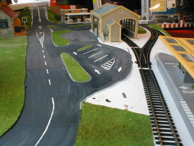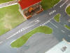 After that relatively easy stage, the roads were painted. This is also very easy to do. Many beginners paint roads black. And it usually looks wrong. A dark grey looks better because roads are not normally a true black. If you would like to have line markings on the