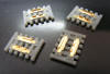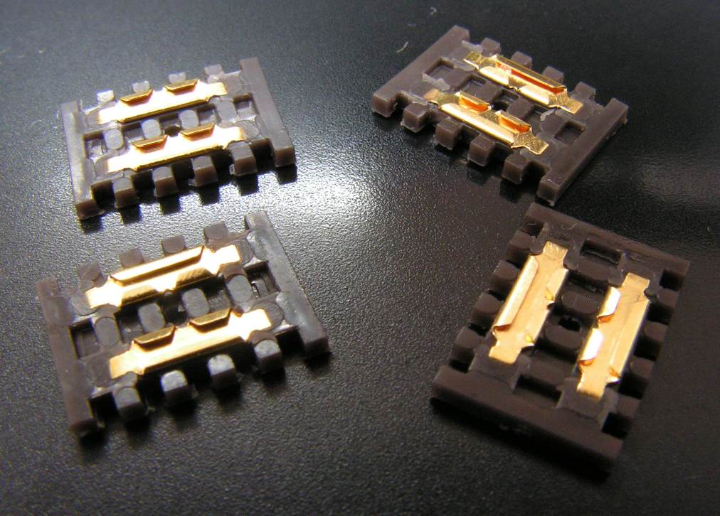 Gold-plated rail joiners attached to a sleeper base. Designed